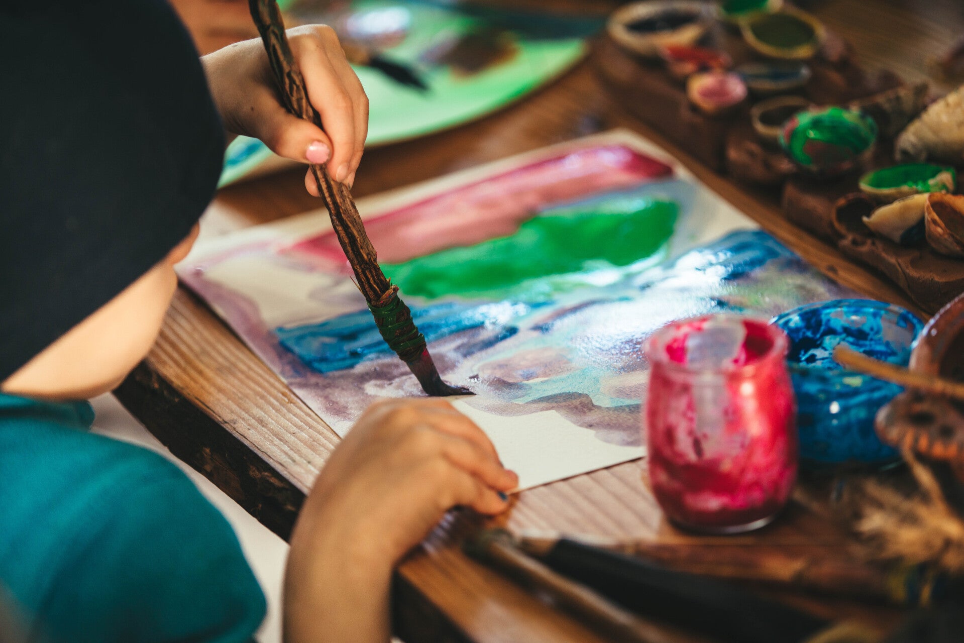 Un atelier emblématique où les enfants fabriquent leurs propres pinceaux à partir de végétaux.